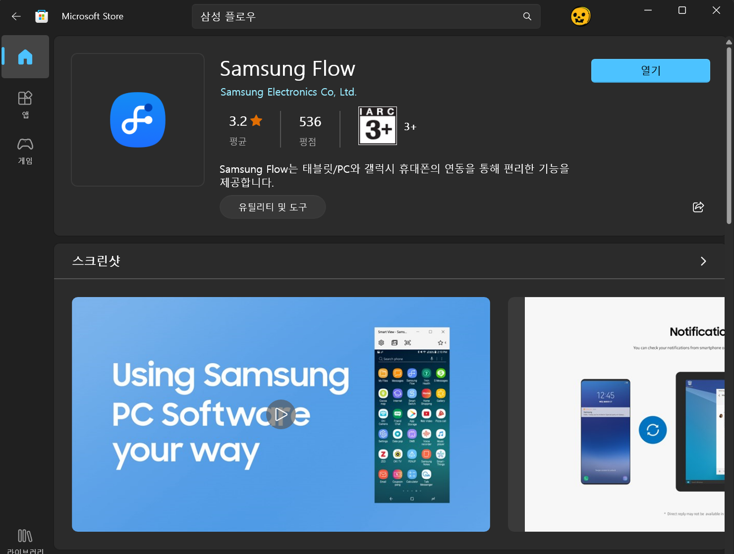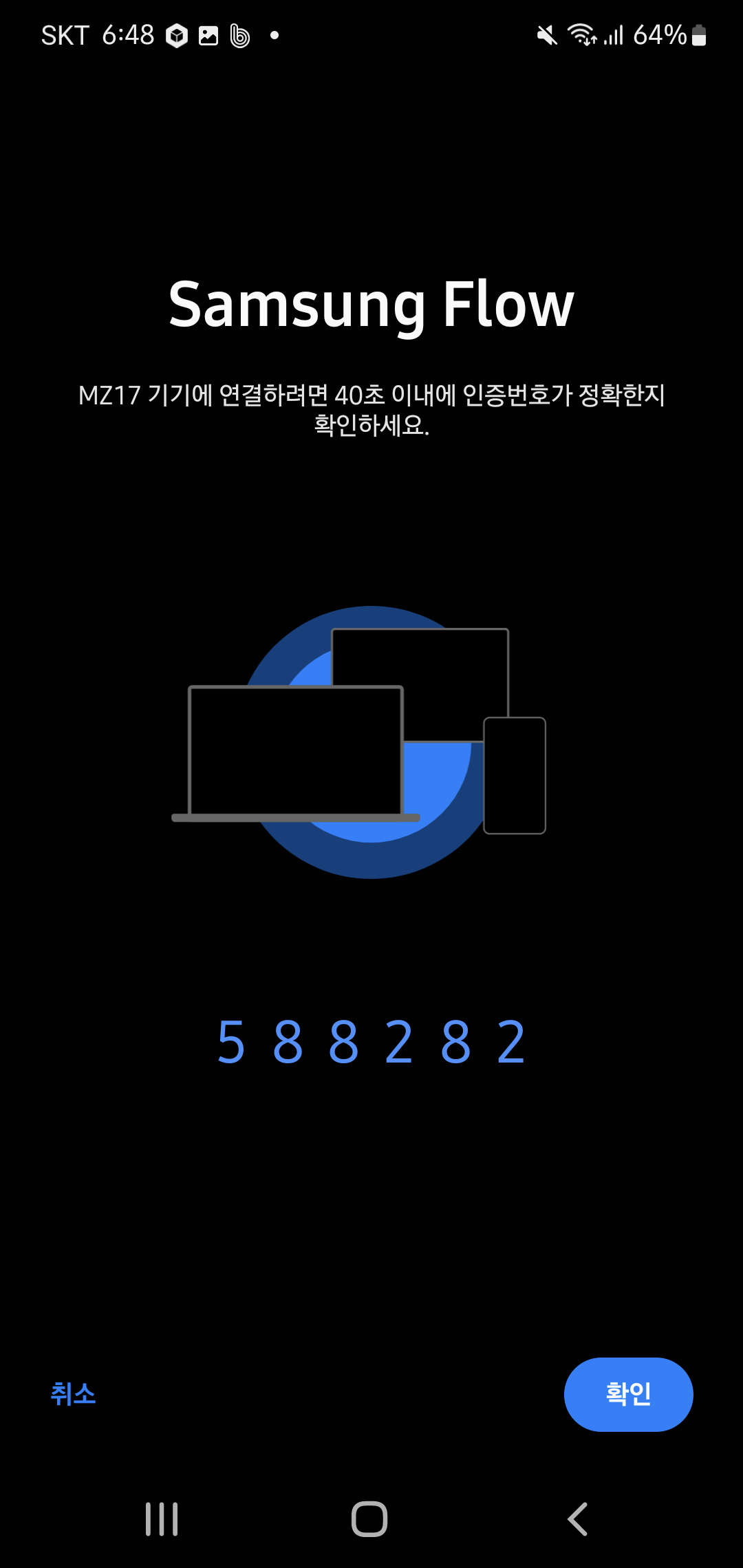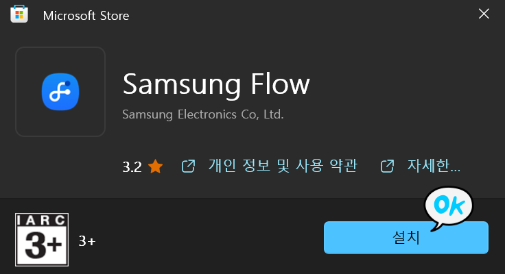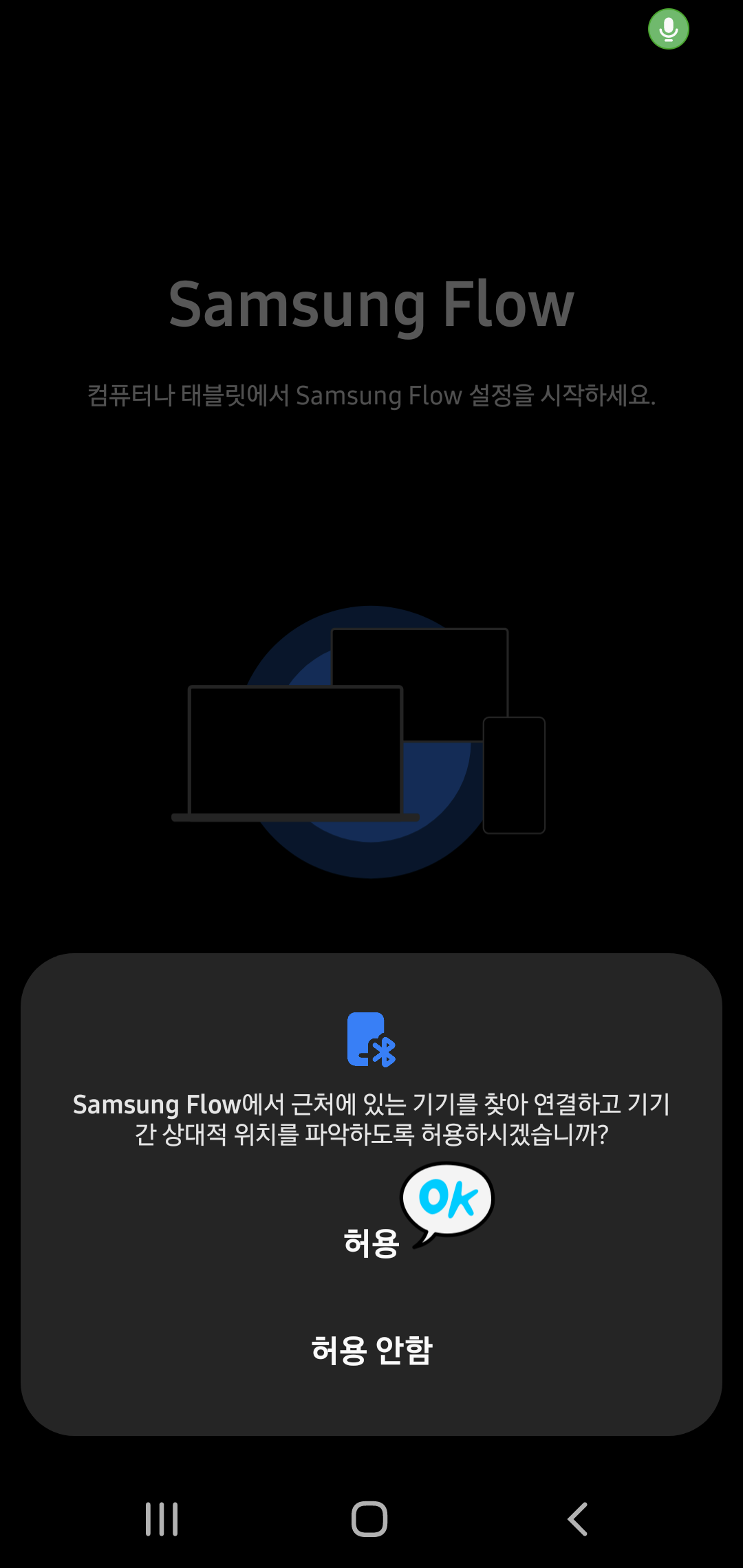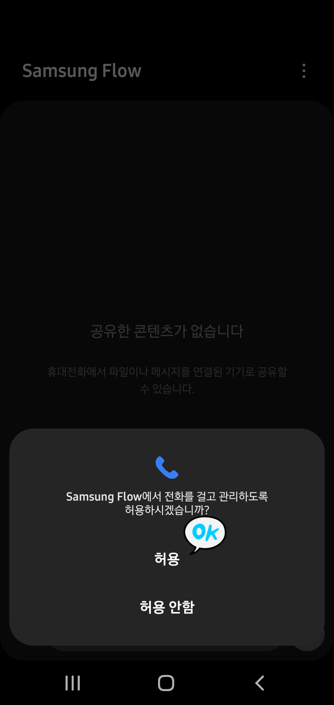 삼성 플로우 (Samsung Flow) 를 설치 하고 정보 허용을 합니다